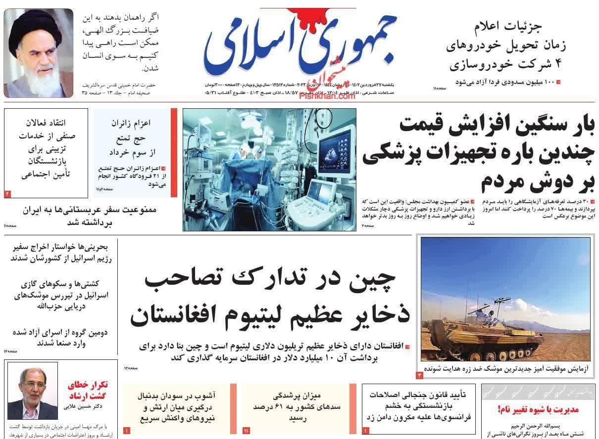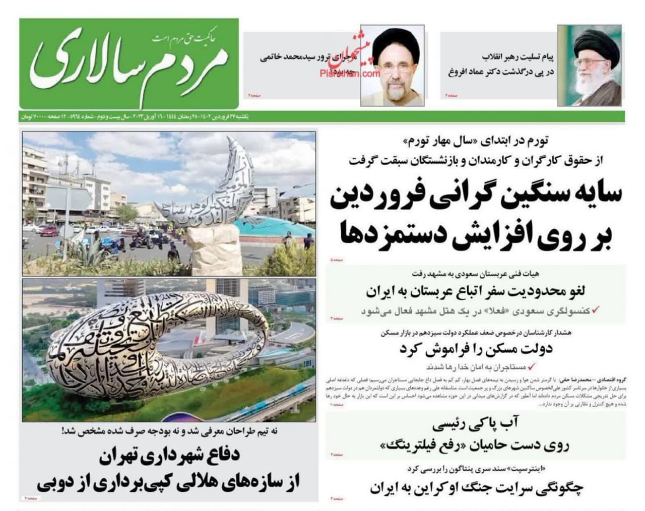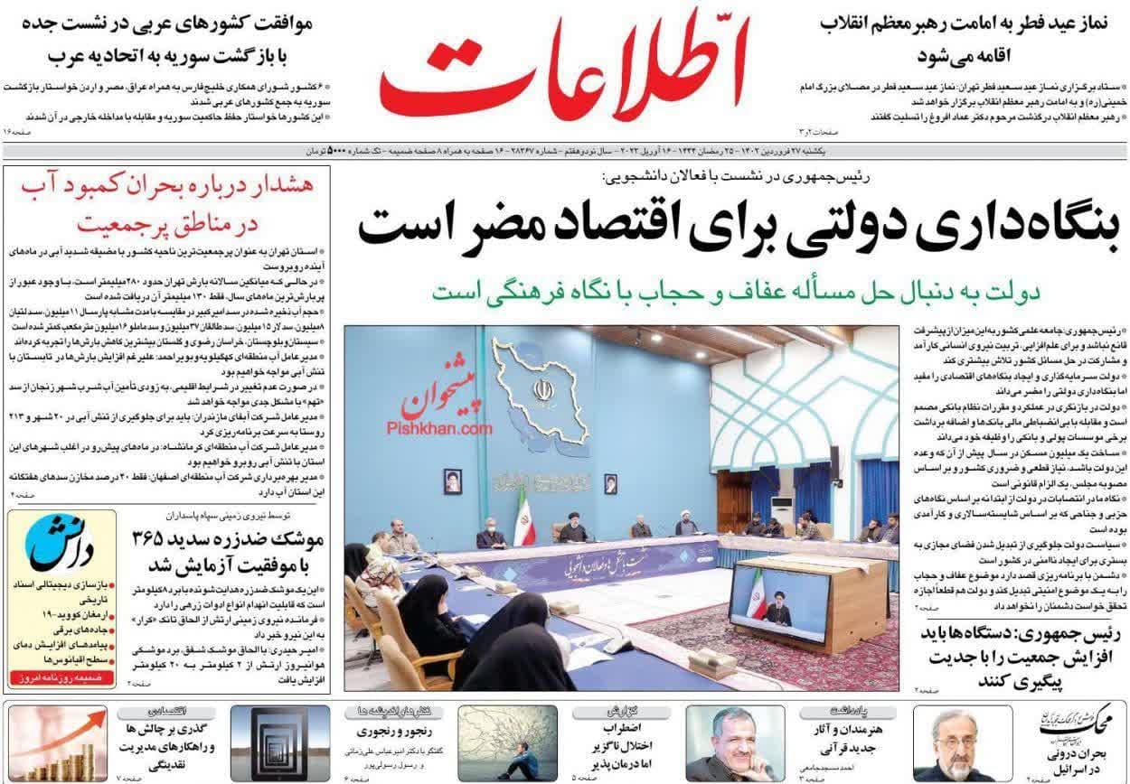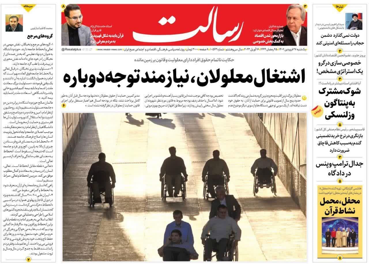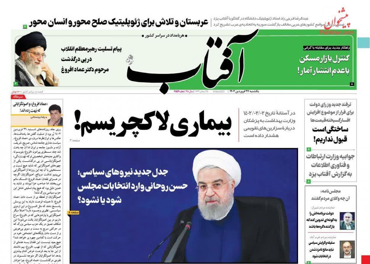 صفحه نخست روزنامه‌های سیاسی یکشنبه ۲۷ فروردین