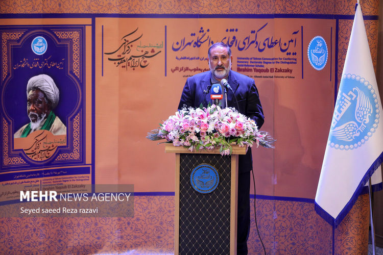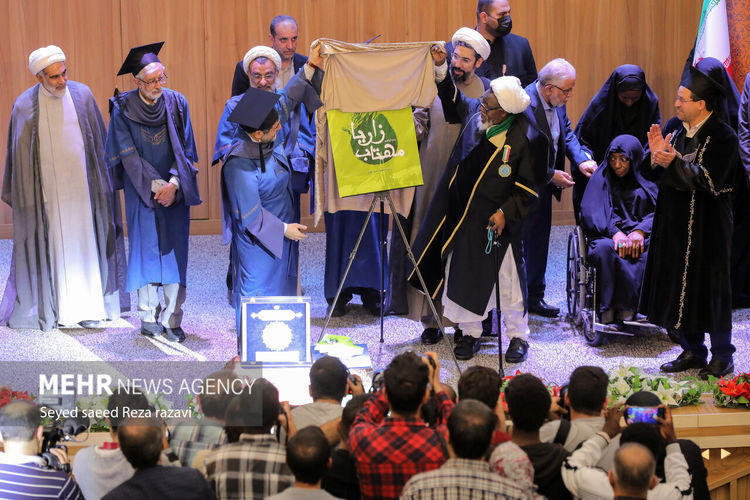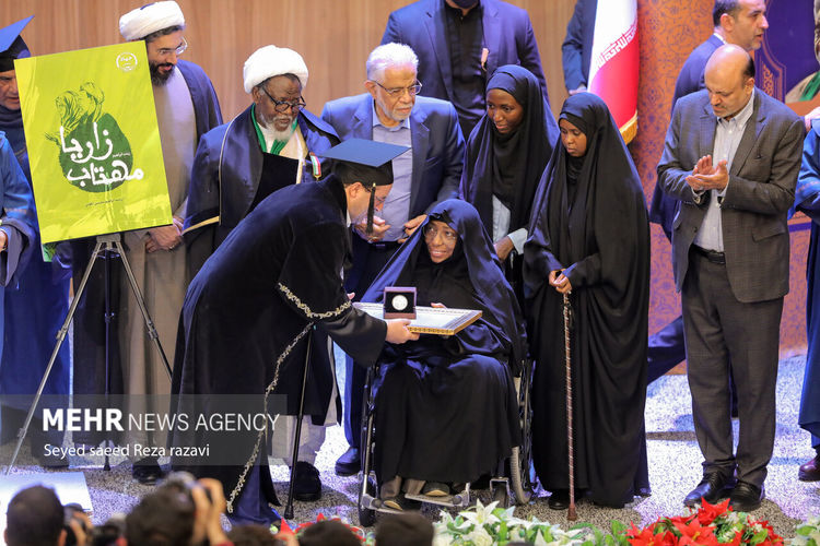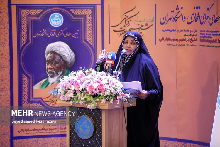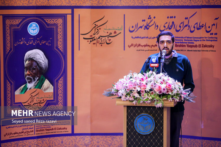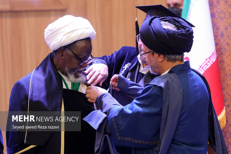 مراسم اعطای دکترای افتخاری دانشگاه تهران به شیخ ابراهیم زکزاکی رهبر شیعیان نیجریه شامگاه شنبه ۲۲ مهر ماه ۱۴۰۲ با حضور با حضور جمعی از شخصیتهای علمی، فرهنگی و سیاسی در محل تالار علامه امینی دانشگاه تهران برگزار شد.