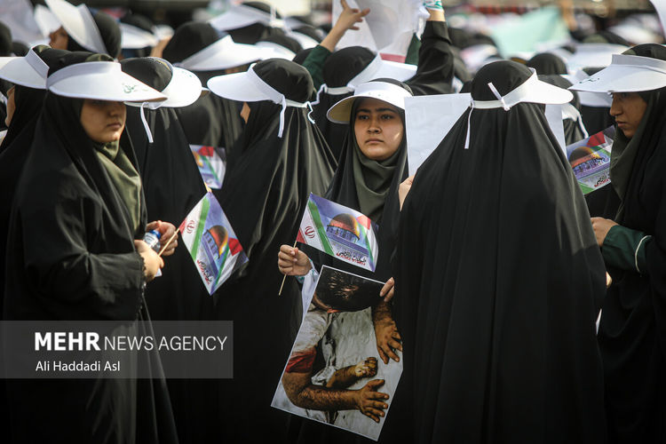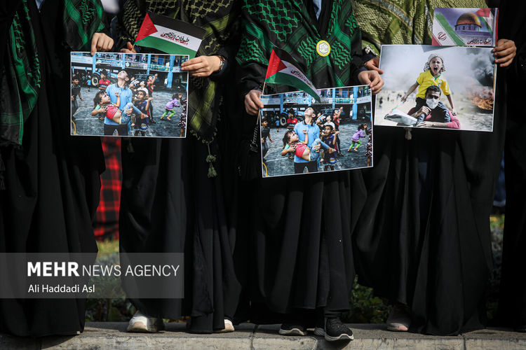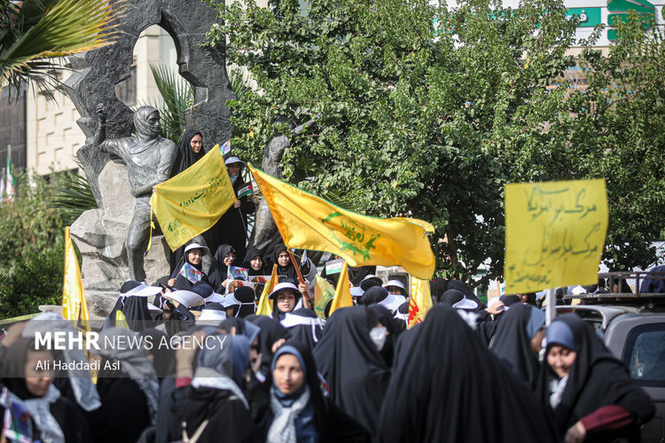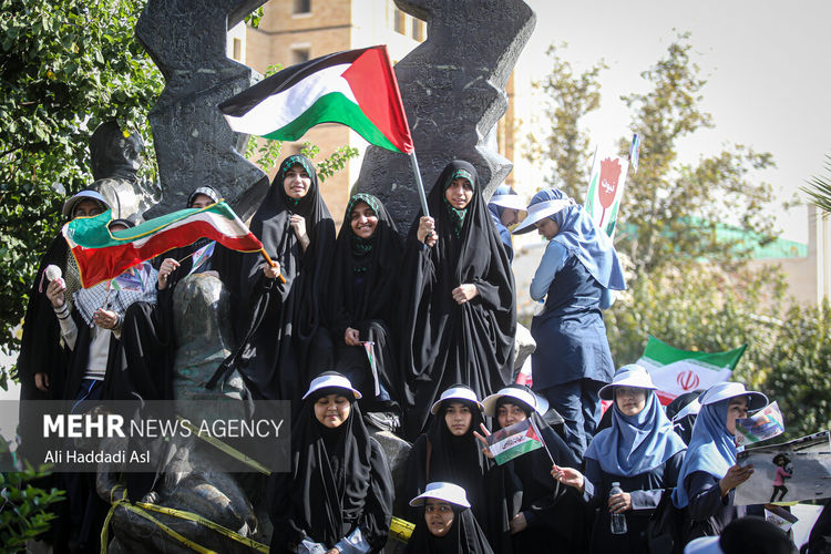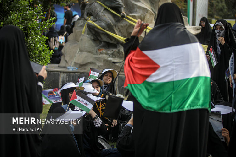 عکس:علی حدادی اصل تجمع دانش آموزان شهر تهران در حمایت از کودکان غزه و فلسطین، صبح روز چهارشنبه ۳ آبان ۱۴۰۲ در میدان فلسطین برگزار شد.
