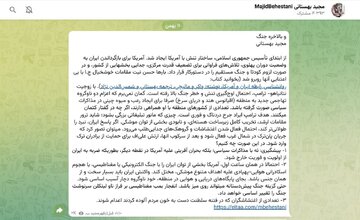 متأسفانه اصولی که از آغاز تمدنها تا امروز مورد قبول همگان بوده، یعنی پایبندی به پیمان، نادیده گرفته میشود. قهرمانان و فرماندهان در گذشته زمانی که پیمانی میبستند، حتی حاضر بودند جان خود را بدهند، اما از آن پیمان برنگردند. ما نیز به پیمانهایی که بسته بودیم، پایبند ماندیم، اما کشوری که امروز ادعای تمدن دارد، بهراحتی پیمانی را که خود امضاء کرده بود، پاره میکند.